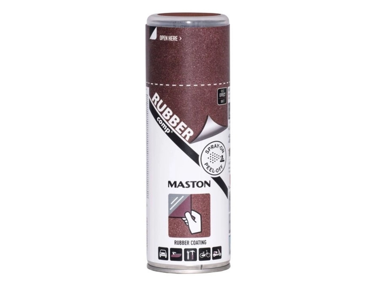 Guma w sprayu Maston RUBBER Comp, dzięki której w łatwy sposób zmienisz kolor najprzeróżniejszych powierzchni: metalowych, plastikowych i innych. Po nałożeniu kilku warstw powstaje równomierna, gładka powierzchnia, stosunkowo odporna na uszkodzenia mechaniczne, którą w łatwy sposób, poprzez zerwanie można usunąć.