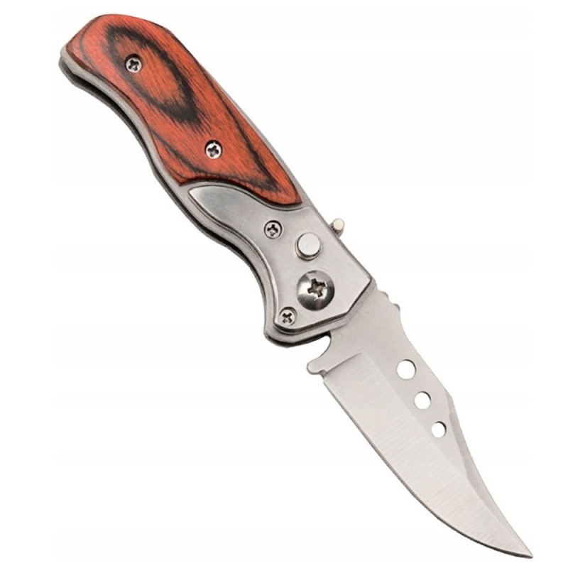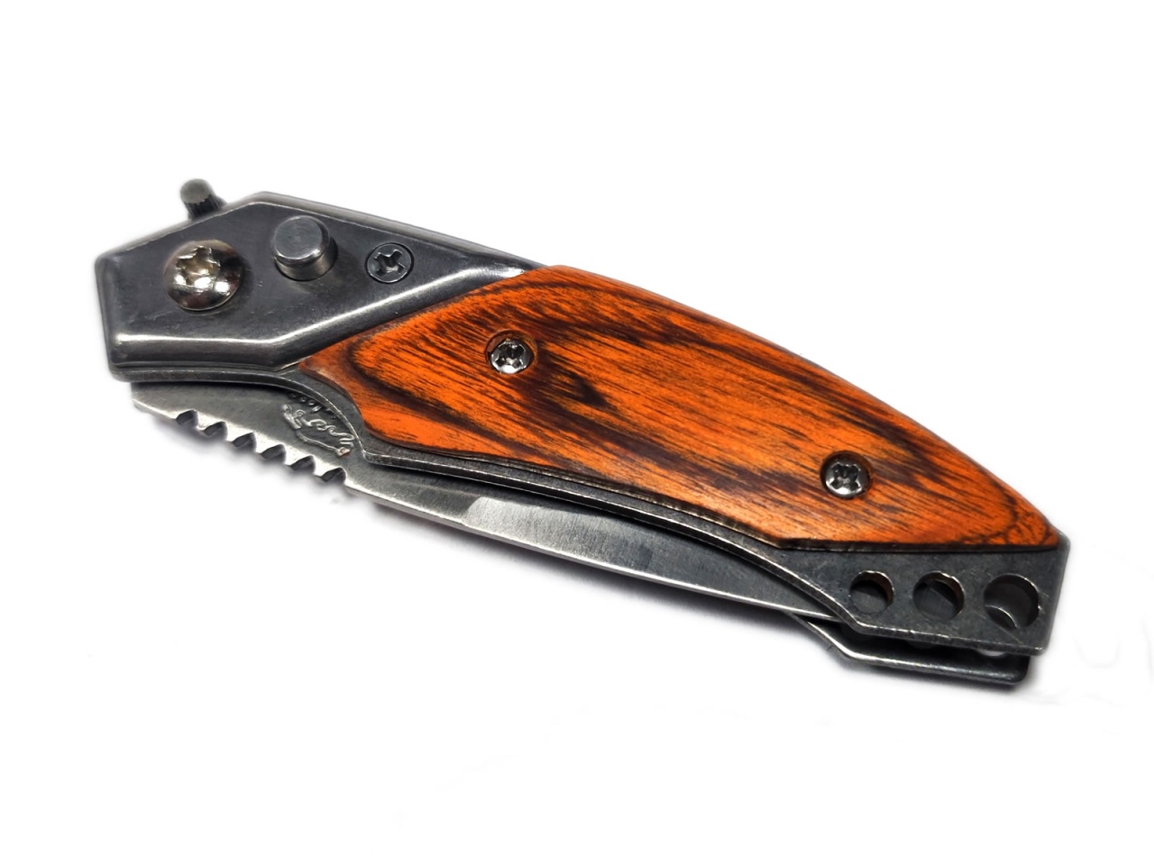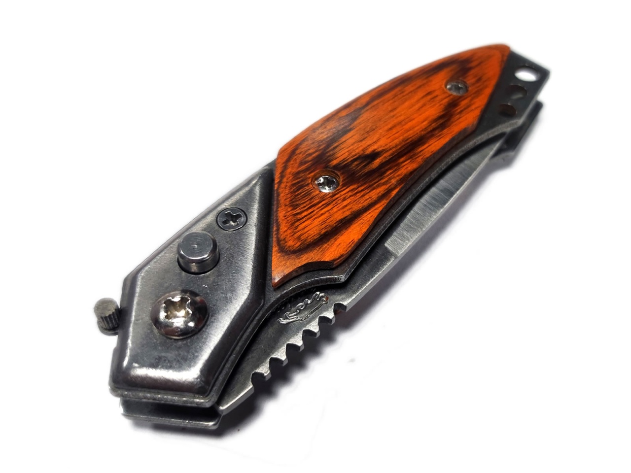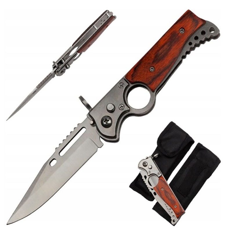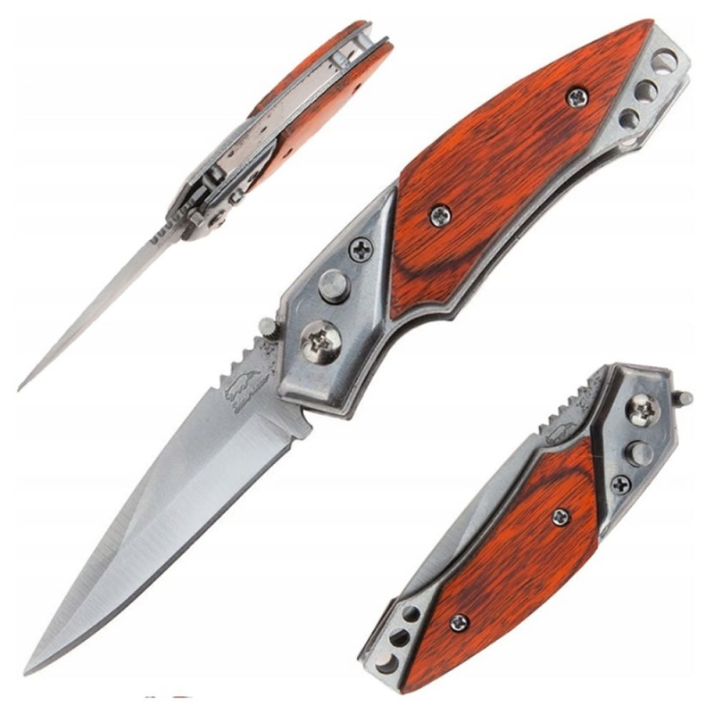 Bardzo solidny i poręczny składany scyzoryk. Wytrzymałość i piękny wygląd zapewnia grube ostrze wykonane z wysokogatunkowej stali nierdzewnej. Nóż został wyposażony w efektywny system blokady, która chroni przed mimowolnym złożeniem lub rozłożeniem. Świetnie leży w dłoni. Nóż idealnie nadaje się na prezent.