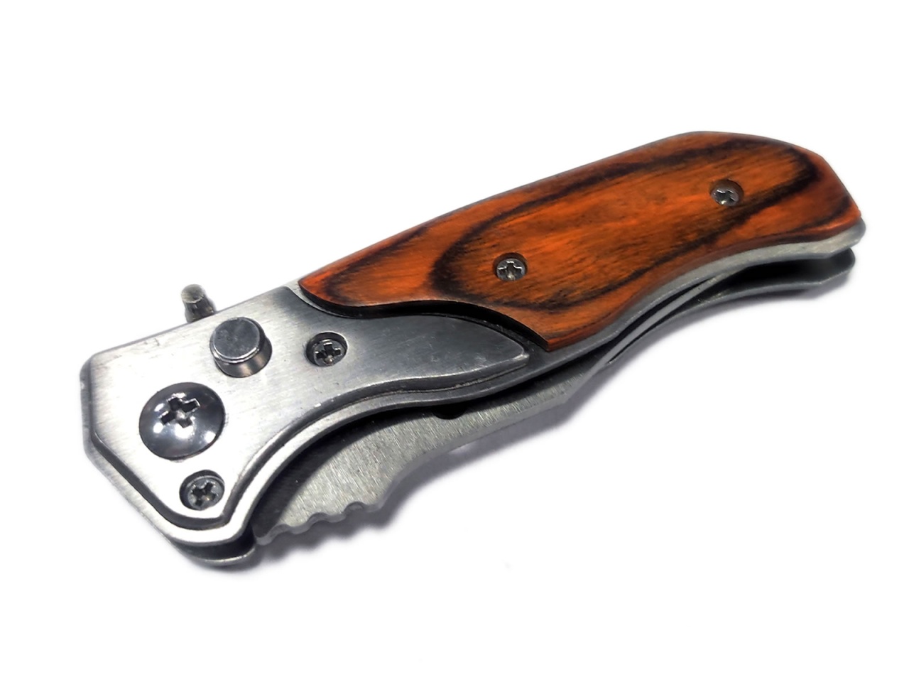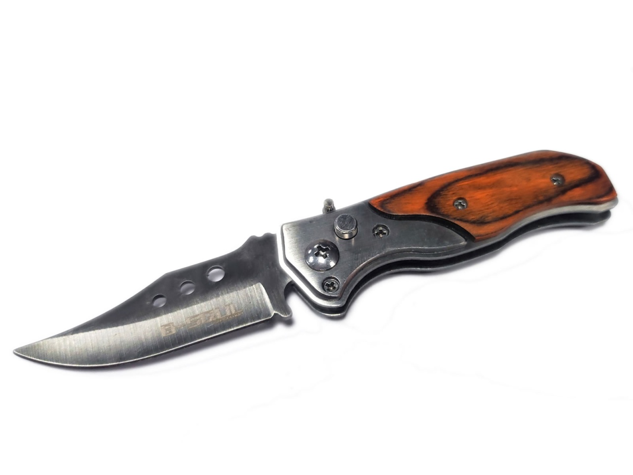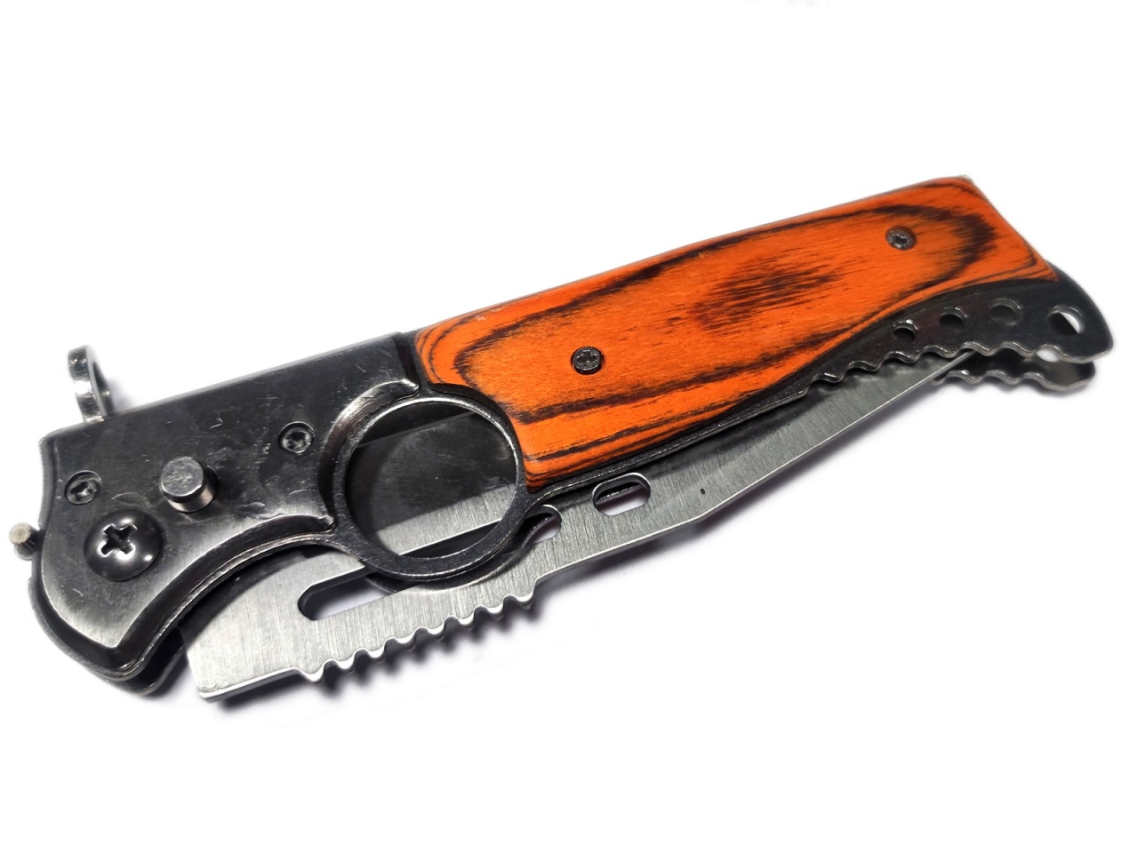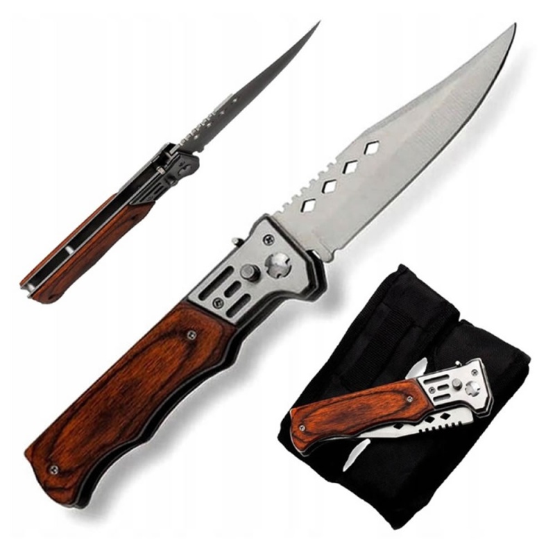 Bardzo solidny i poręczny składany scyzoryk. Wytrzymałość i piękny wygląd zapewnia grube ostrze wykonane z wysokogatunkowej stali nierdzewnej. Nóż został wyposażony w efektywny system blokady, która chroni przed mimowolnym złożeniem lub rozłożeniem. Świetnie leży w dłoni. Nóż idealnie nadaje się na prezent.