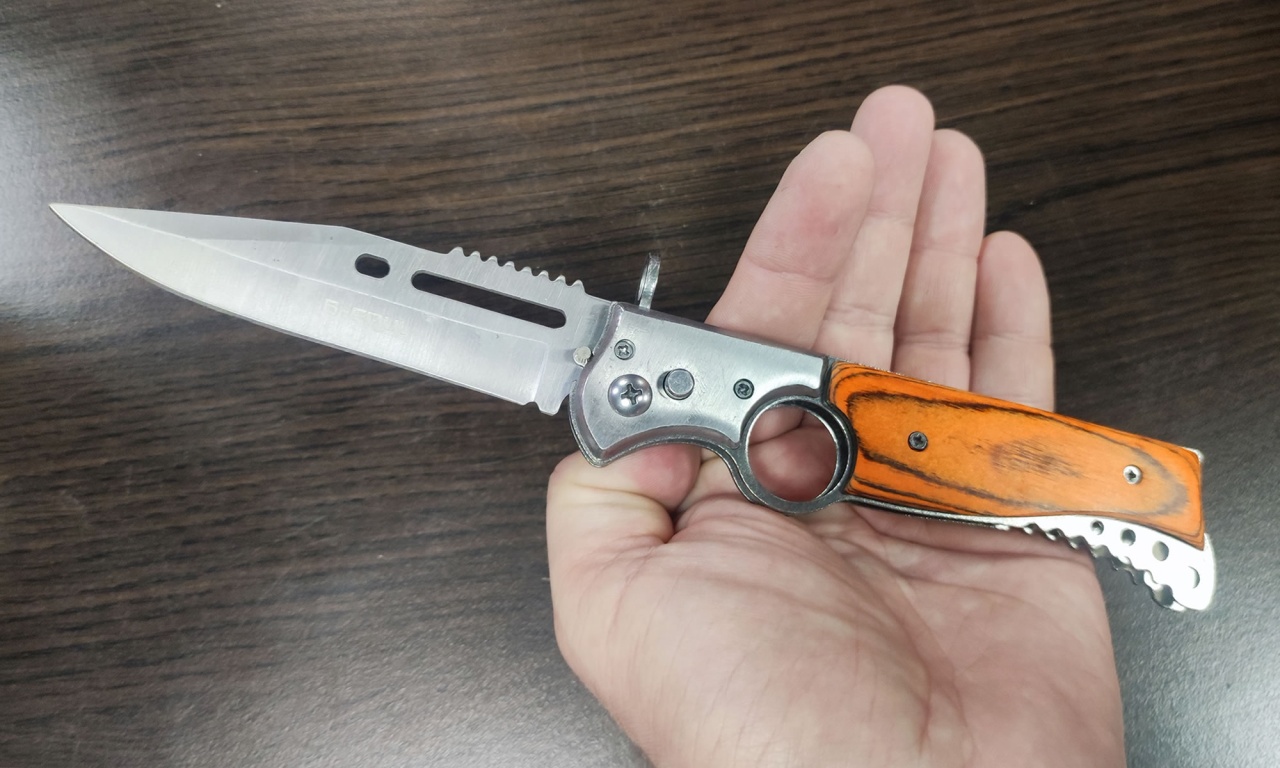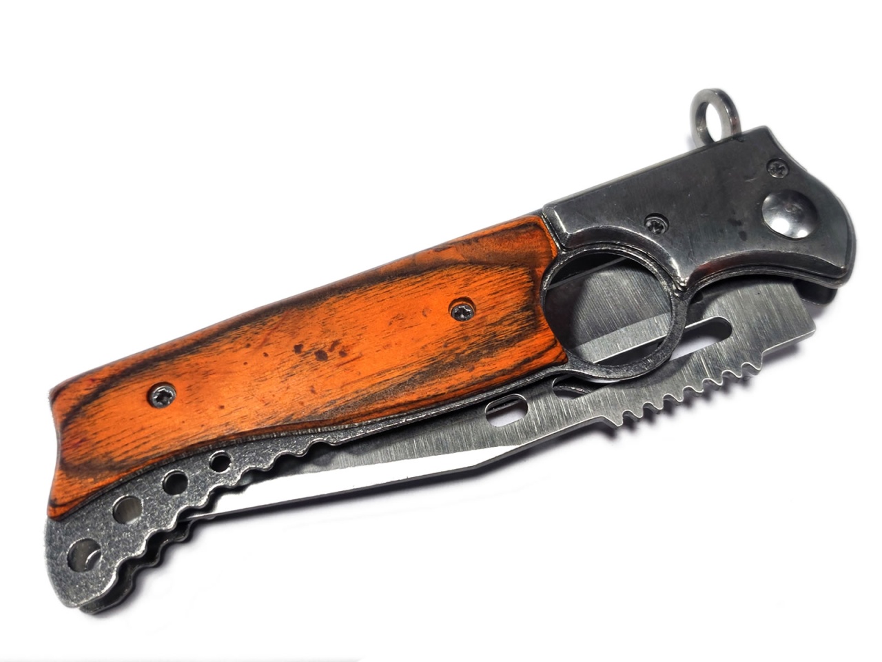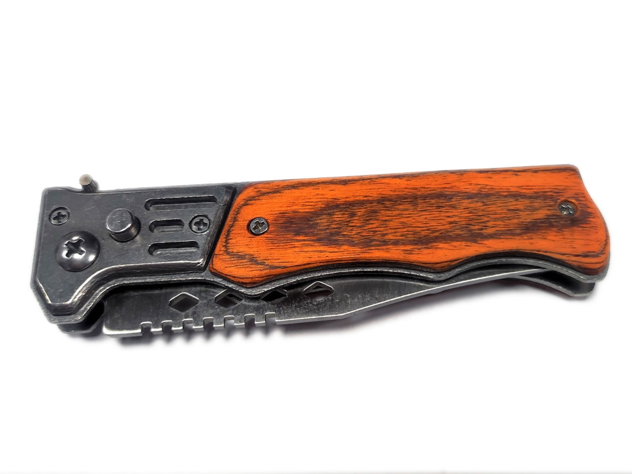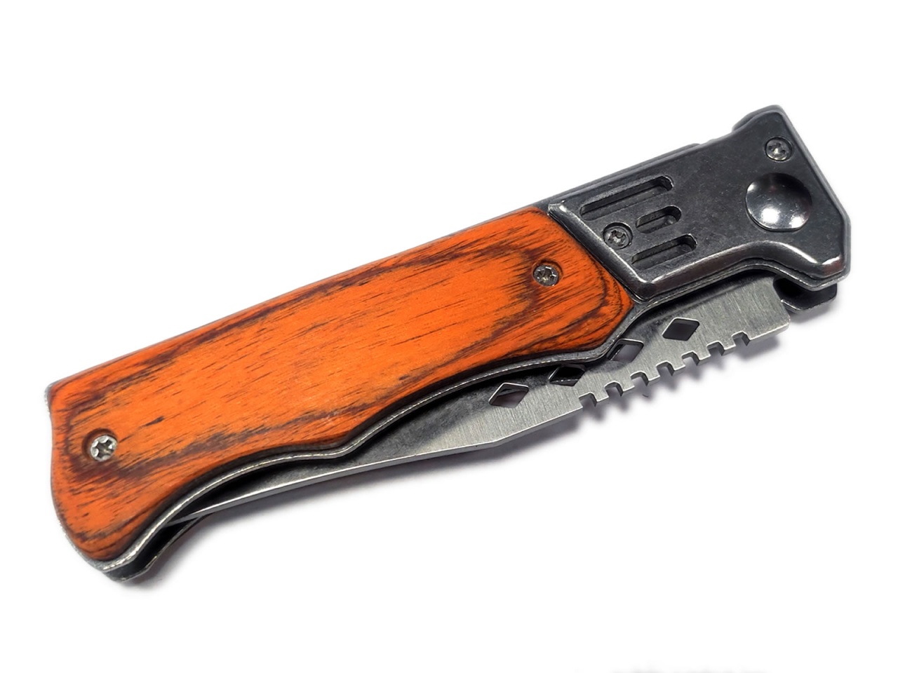 Bardzo solidny i poręczny składany scyzoryk. Wytrzymałość i piękny wygląd zapewnia grube ostrze wykonane z wysokogatunkowej stali nierdzewnej. Nóż został wyposażony w efektywny system blokady, która chroni przed mimowolnym złożeniem lub rozłożeniem. Świetnie leży w dłoni. Nóż idealnie nadaje się na prezent.