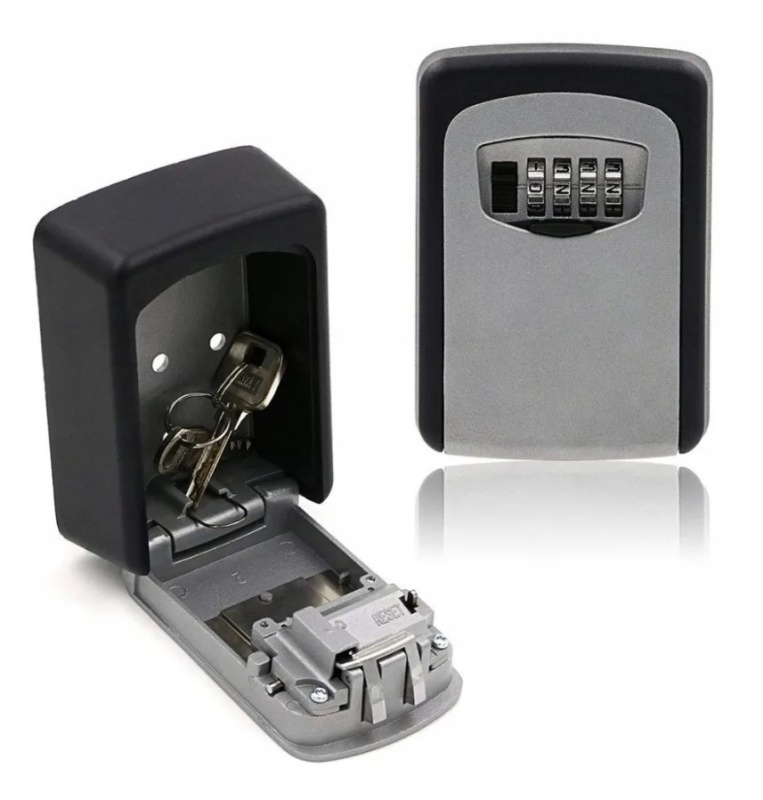 Kompaktowy sejf na klucze zabezpieczony 4-cyfrowym kodem.
