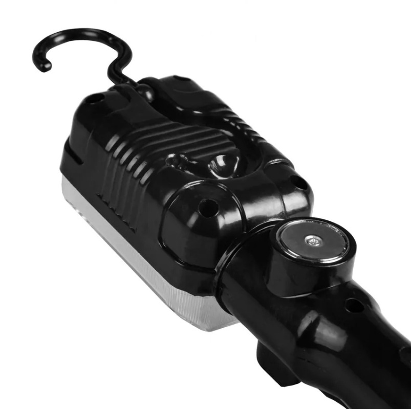 Obrotowy haczyk umożliwia zawieszenie latarki w każdym dowolnym miejscu, przykładowo na masce samochodu.