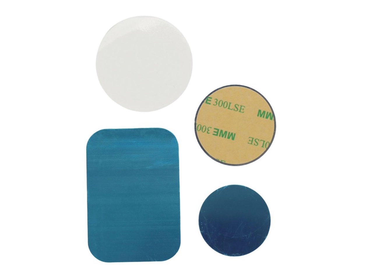 - Zestaw: 1× uchwyt, 1× podkładka montażowa, 3× płytki metalowe (2 okrągłe, 1 kwadratowa)