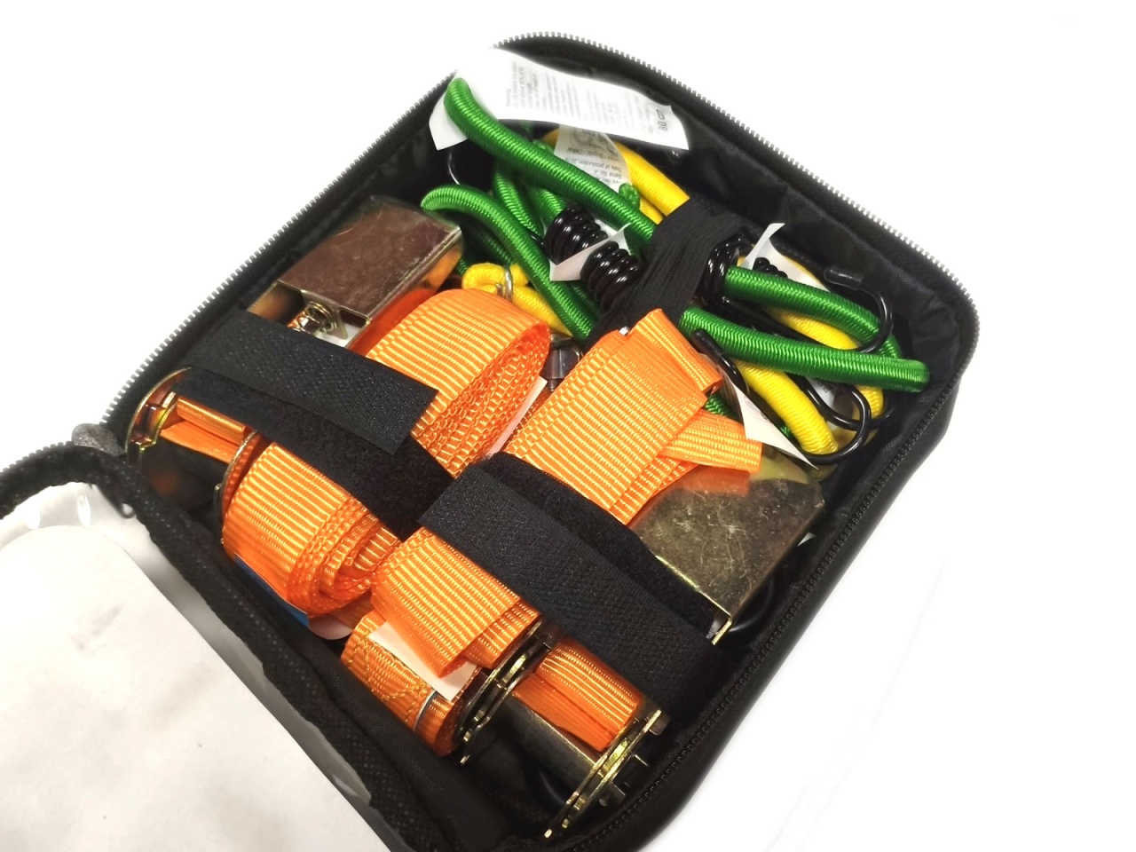W zestawie znajdują się cztery funkcjonalne i wytrzymałe pasy transportowe oraz cztery linki elastyczne. Poniżej prezentujemy szczegółowe parametry: