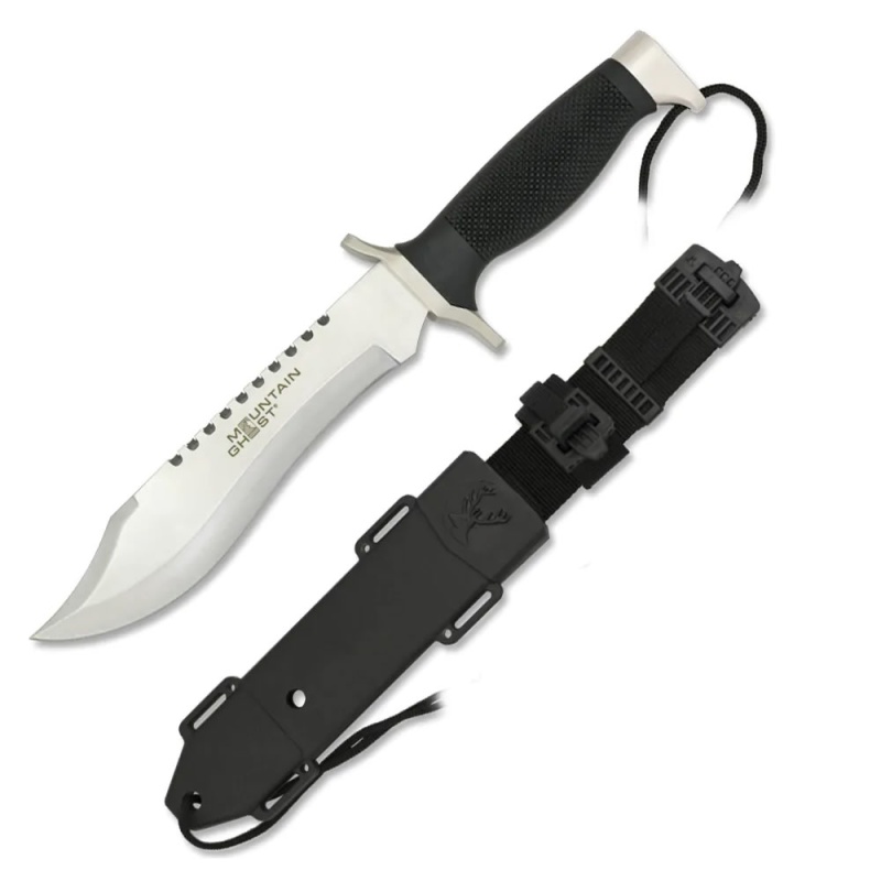 MOUNTAIN GHOST® Nóż taktyczny survivalowy wojskowy rzutka do rzucania sztylet kabura neck knife na szyję 12cm. Nóż taktyczny to kompaktowy neck knife zaprojektowany do codziennego noszenia i zastosowań outdoorowych. Posiada stałą głownię o profilu dagger wykonaną ze stali nierdzewnej z czarną powłoką ochronną ograniczającą odblaski i zwiększającą odporność na korozję.
