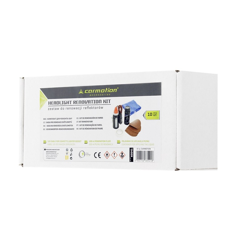 Specjalistyczny zestaw służący do profesjonalnej renowacji reflektorów samochodowych, wykonanych z tworzyw sztucznych. Usuwa wszelkie zarysowania, przebarwienia i zmatowienia. Zregenerowane lampy odzyskują swój pierwotny, atrakcyjny wygląd. Zestaw nie nadaje się do renowacji szklanych reflektorów.