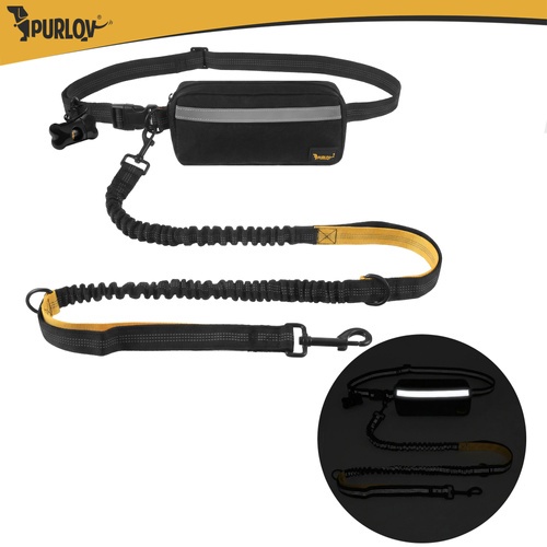 Pas biodrowy ze smyczą do biegania z dużym psem Purlov - 2 m do 50 kg amortyzator + etui i woreczki