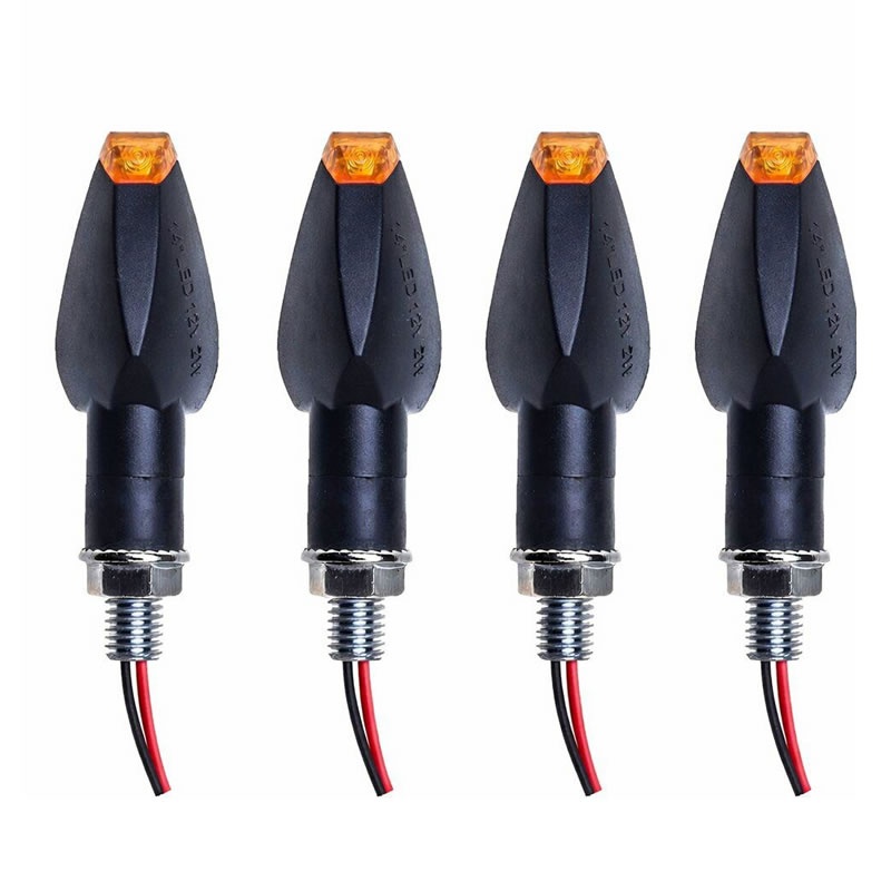 Zestaw kierunkowskazów LED przeznaczony do jednośladów zapewnia dobrą widoczność podczas jazdy. Kompaktowa konstrukcja oraz uniwersalne mocowanie umożliwiają łatwy montaż. Nowoczesny wygląd nadaje pojazdowi bardziej dynamiczny charakter.