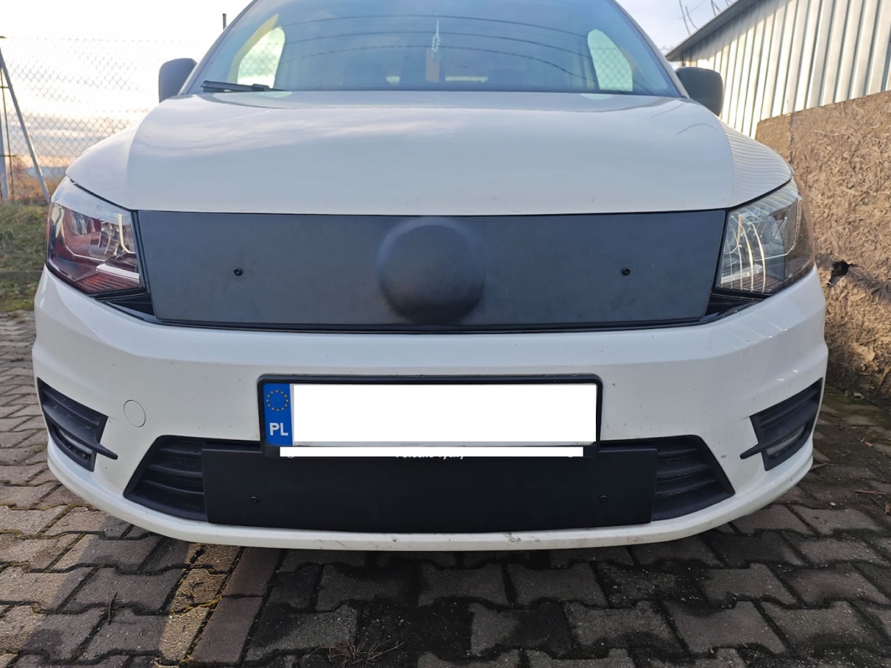 Wykonana z ciemnego plastiku osłona wlotu powietrza. W zestawie elementy montażowe. Dedykowana do samochodów Volkswagen Caddy III, wersja po drugim liftingu, produkcja od 2015 do 2020 r. Osłona górna.