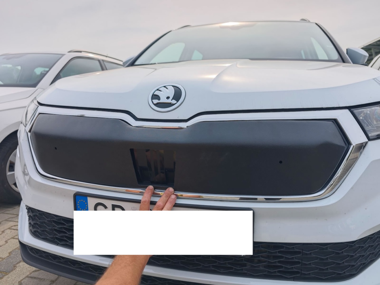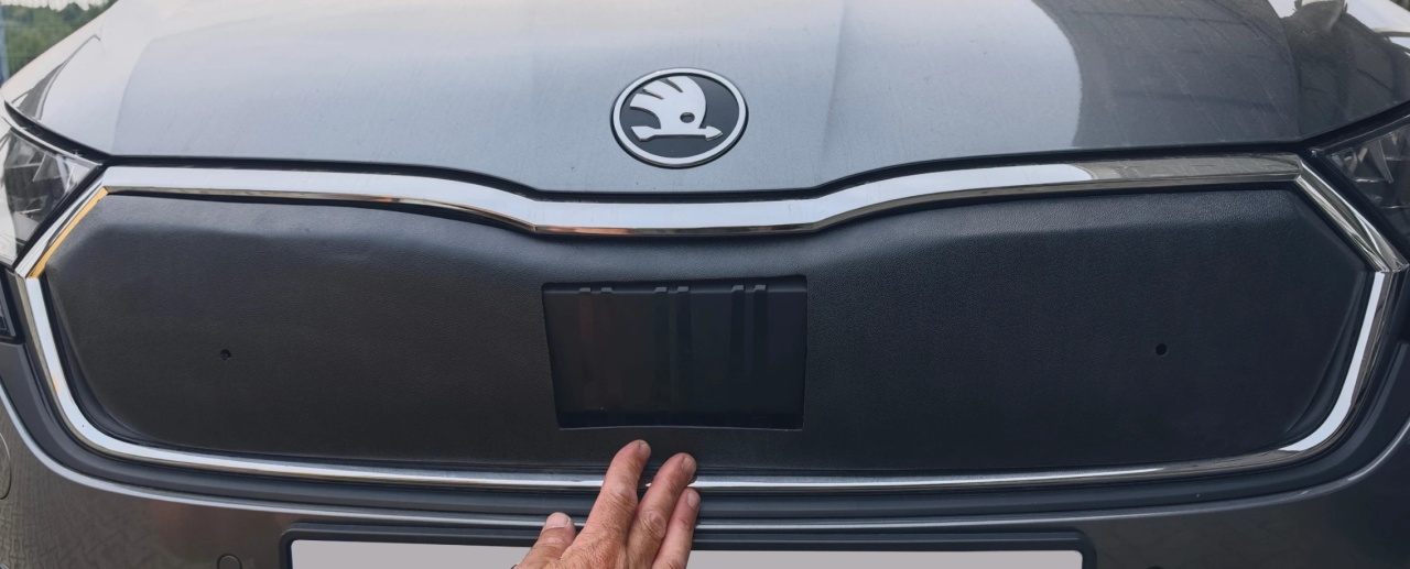 Wykonana z ciemnego plastiku osłona wlotu powietrza. W zestawie elementy montażowe. Dedykowana do samochodów Skoda Kamiq, produkcja od 2019 do ... Osłona dolna.