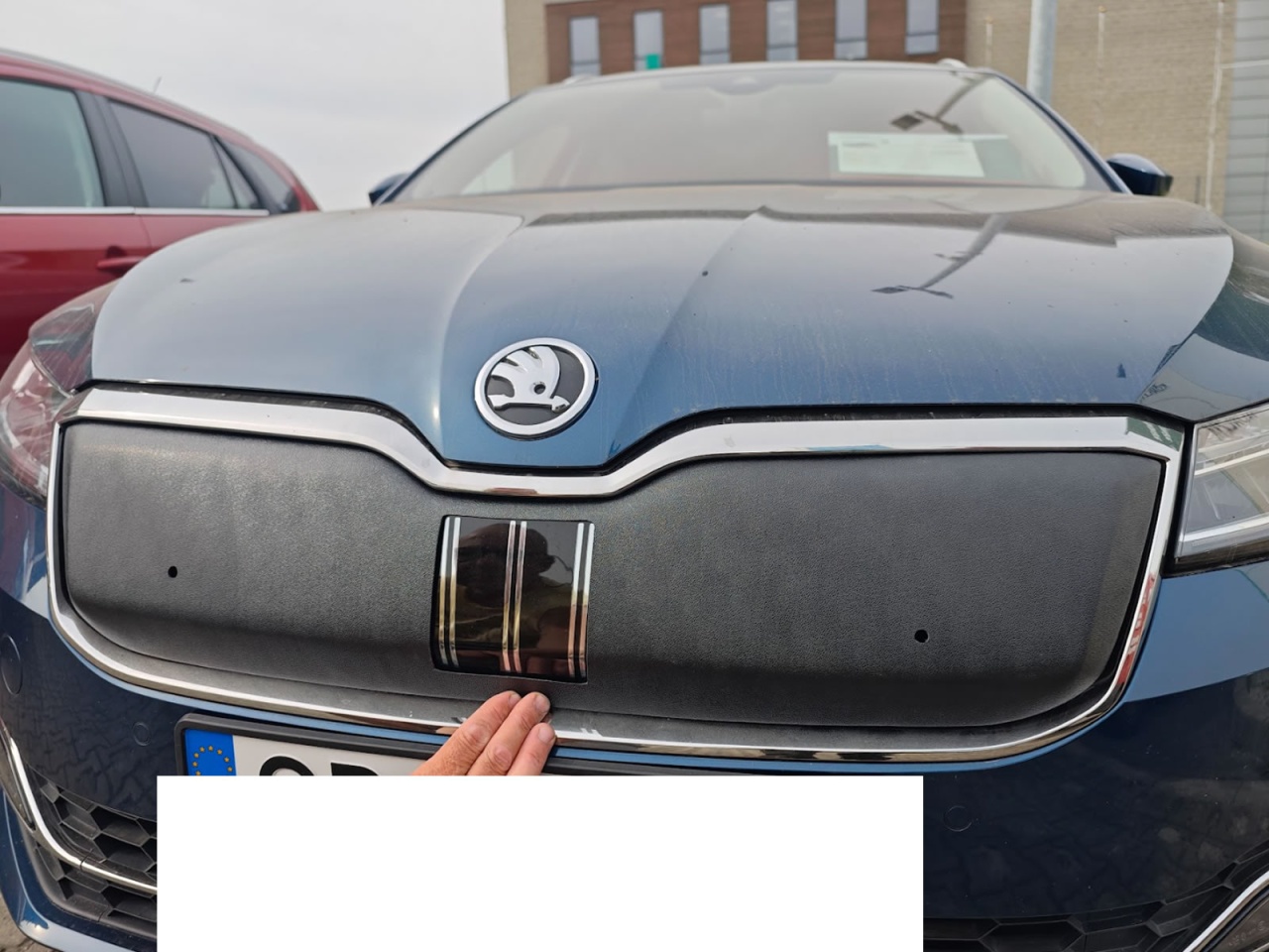 Wykonana z ciemnego plastiku osłona wlotu powietrza. W zestawie elementy montażowe. Dedykowana do samochodów Skoda Kodiaq I , wersja po liftingu, produkcja od 2021 do 2024 r. Osłona górna.