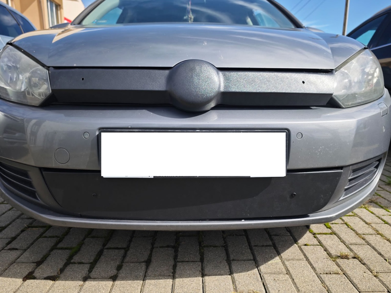 Wykonana z ciemnego plastiku osłona wlotu powietrza. W zestawie elementy montażowe. Dedykowana do samochodów VW Golf VI, produkcja od 2008 do 2014. Osłona dolna.
