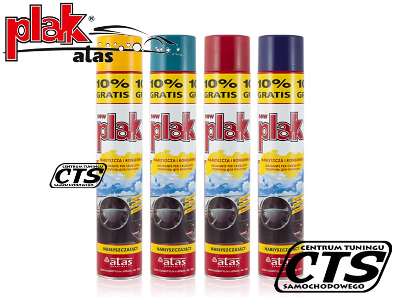 PLAK Nabłyszcza i konserwuje to preparat do czyszczenia i konserwacji kokpitu oraz innych elementów we wnętrzu samochodu wykonanych z tworzyw sztucznych. Nabłyszcza, odświeża kolor i pozostawia przyjemny zapach. Zawiera silikon.